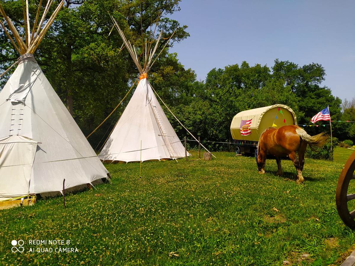 - 4 tipis et 1 roulotte de cowboy